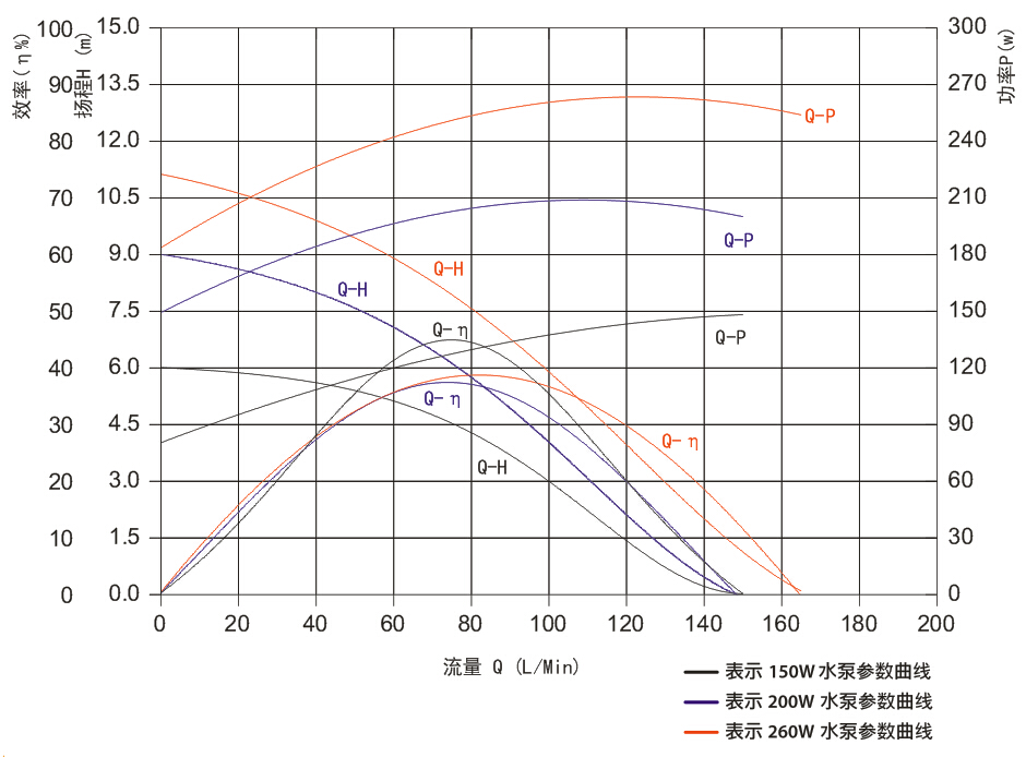 | 額定電壓 | 使用電壓范圍 | 額定電流 | 最大揚程 | 最大流量 | 額定功率 | 最大噪音 |