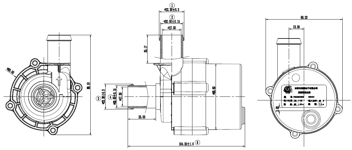 | 額定電壓 | 使用電壓范圍 | 額定電流 | 最大揚程 | 最大流量 | 額定功率 | 最大噪音 |
